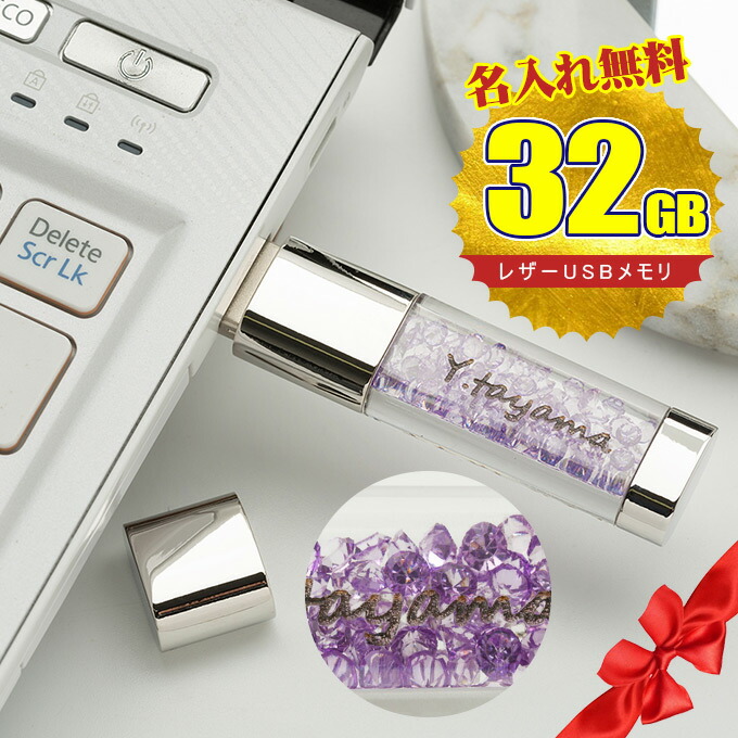 バレンタイン 名入れ無料 32GB USBメモリ きらきらストーン ジュエリー 名前入り ネーム入り 母の日 父の日 入学 卒業 就職 お礼 お祝い プレゼント 無料ラッピング素材付き 記念品