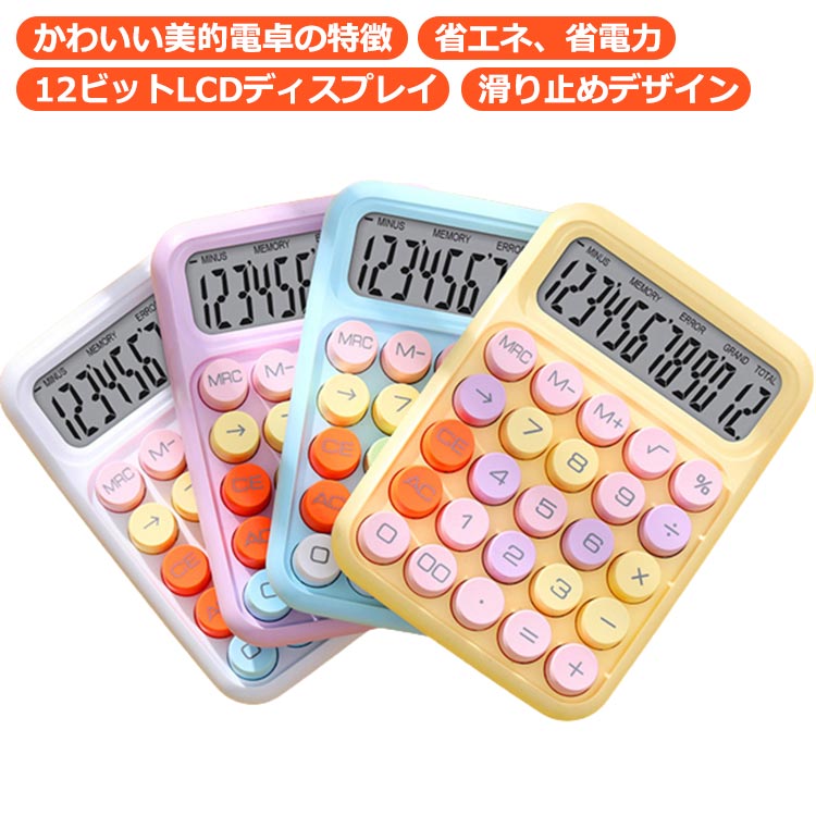 12桁電卓 ラウンドボタン 持ち運び かわいい おしゃれ 計算機 簡単 簿記 計算機 事務用 日常・基本