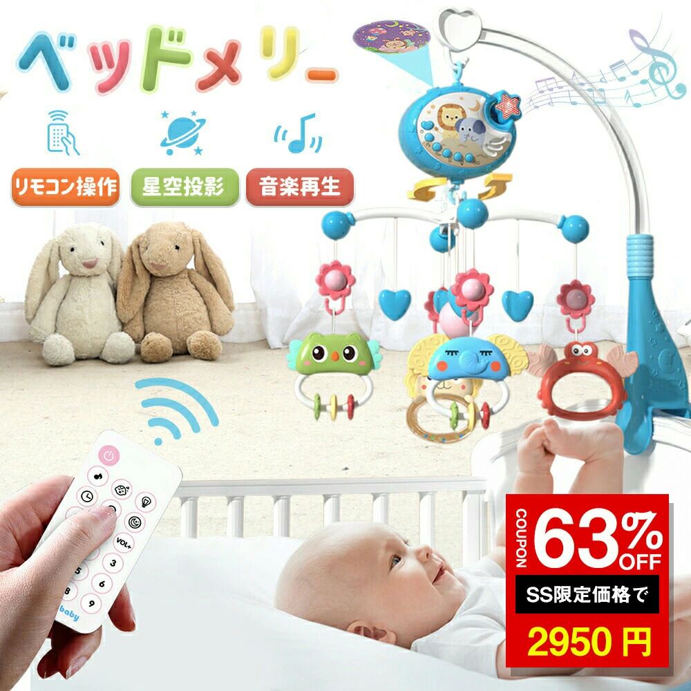 寝かしつけ おもちゃ 赤ちゃん リモコン操作 360°回転 投影機能搭載 モービル メリー ベビー 床置き オルゴール アーム 手巻き
