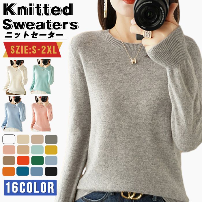 ニット セーター レディース プルオーバーセーター クルーネック トップス 長袖 カットソーセーター 秋 冬 無地 おしゃれ シンプル エレガント 着回し 保温 可愛い カジュアル 通勤 6色