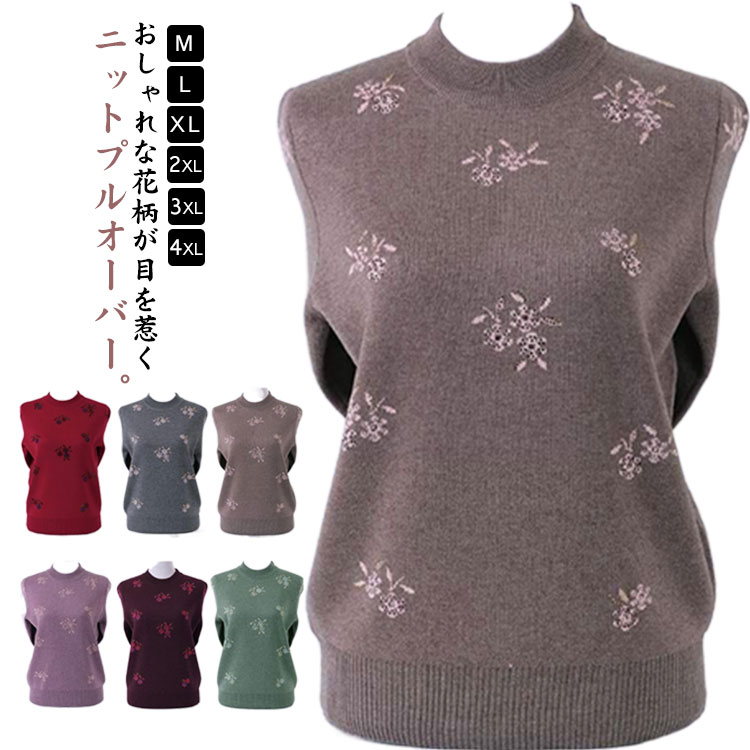 シニアファッション 秋冬 ニット セーター 長袖 ニットプルオーバー ニットトップス フラワー おしゃれ シニア 秋物 秋服 冬服 長袖ニット 敬老の日 プレゼント