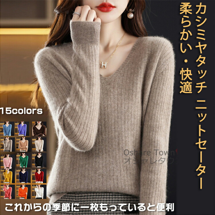 カシミヤタッチ ニットセーター セーター レディース Vネック ニット インナー ブラウス 長袖 無地 キレイ オシャレ カワイイ シンプル ソフト 柔らかい 春 秋 冬 快適 女の子 学生 女 透気
