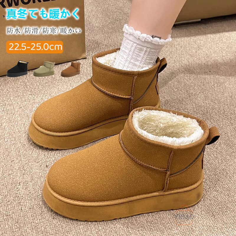 厚底 スノーブーツ レディース 秋冬 新作 裏起毛 ふわふわ 防寒 保温 ショートブーツ 一脚履き カジュアル 滑り止め 交差リボン