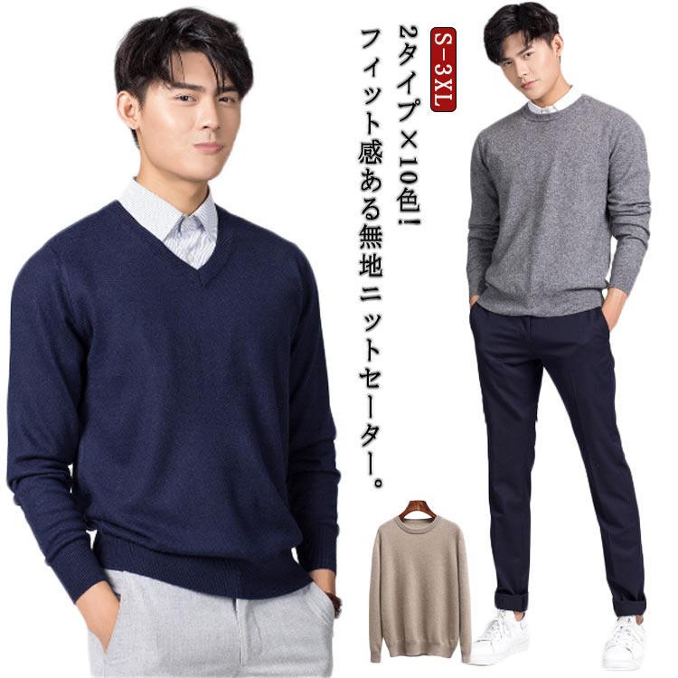 2タイプ×10色 メンズセーター Vネック ラウンドネック スクールセーター ニット セーター メンズ 男子 無地 紳士 ビジネス 学校 通学 通勤 会社 高校生 大きサイズ 冬 防寒 洗える 秋