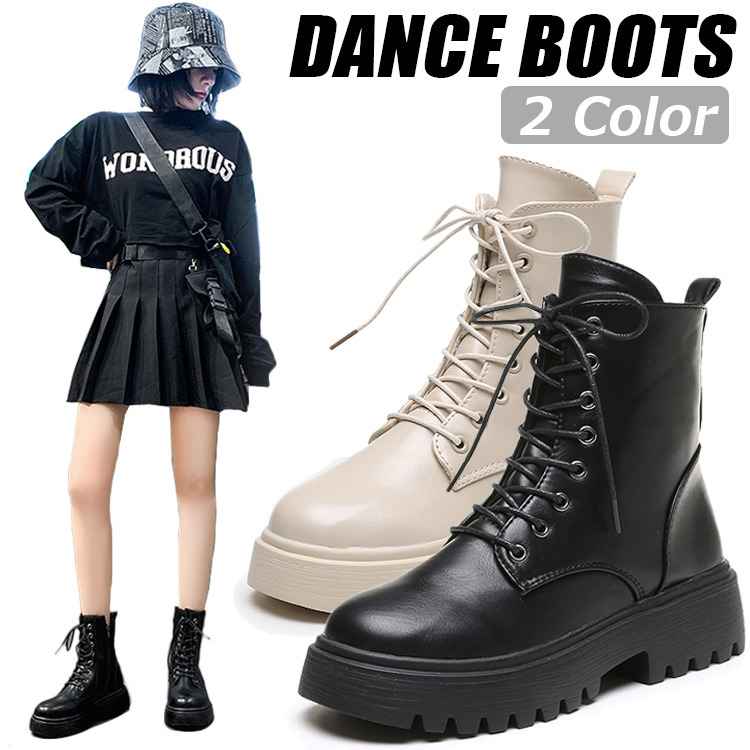 ダンスシューズ 女の子 ダンス ブーツ レディース ダンスブーツ ヒップホップ キッズ 大人 編み上げ 韓国 アイドル k-pop ダンス靴 ミドル丈 ショートブーツ 厚底 黒 ジュニア 女子 軽 白