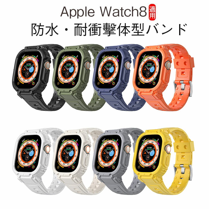8 バンド40/41,44/45 バンパーケース付き アップルウォッチ 一体型バンド スポーツバンド 材質 耐衝撃ベルト 保護ケース 全面保護
