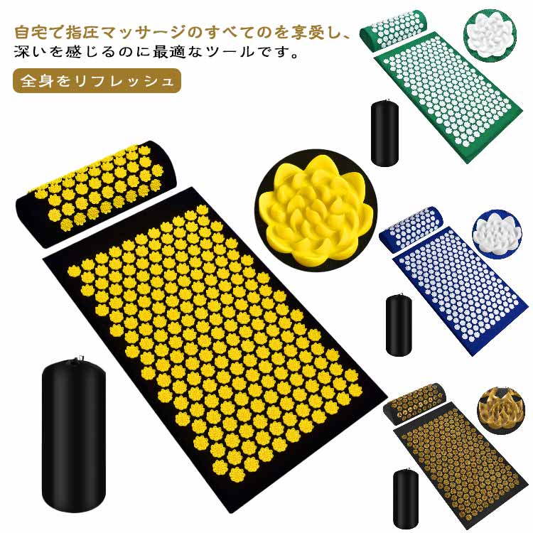 自宅 指圧マット ヨガマット ヨガシャクティマットリラクゼーション 鍼マット 刺さり感 痛みリラックス 指圧スパイクマット 筋肉トレー 室内 室外 男女兼用 トレーニング ジム 運動用 スト 枕セット
