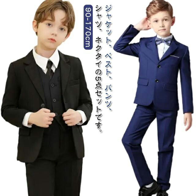 スーツ ピアノ 卒業式 入学式 ネクタイ フォーマルスーツ 子供 ベスト パンツ シャツ ジャケット 5点セット 男の子 発表会 結婚式 フォーマル 子供服 ジュ キッズスーツ