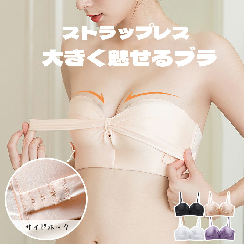 ストラップレスブラ ストラップレス 脇高ブラ パッド付 ブラジャー 落ちない ずれない チューブトップブラ ノンワイヤー 盛れる サイトホック 脇高 育乳 美乳 オフショルダー インナー ベアトップ