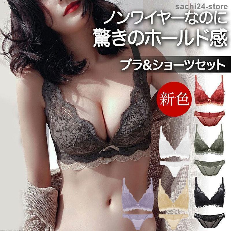 ショーツセット レディース ブラジャー ノンワイヤー ブラセット 美胸 ブラショーツセット 谷間 下着 上下セット レース バストケア 女性