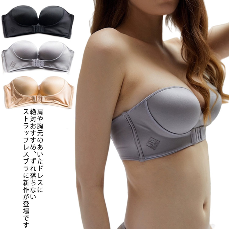 無地 盛り ブラ 谷間 ズレにくい ブラジャー 脇高 垂れ防止 ストラップレスブラ ブラジャー 肩紐なし 滑り止め ズレにくい 下着 前開き