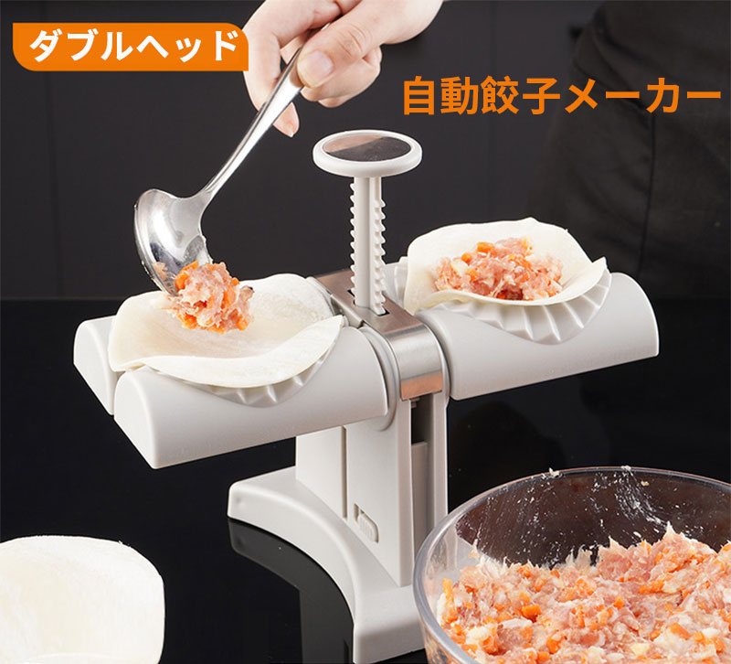 自動餃子メーカー 家庭用 ダブルヘッド 餃子包み器 餃子つくり器 餃子モールド 餃子パック 手作り DIY 作成簡単 2個同時に作る ステンレス+ABS素材 使いやすい 手作り餃子 水洗える 滑り止め