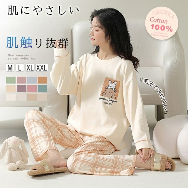 パジャマ レディース ゆったり 大きいサイズ オーガニックコットン 上下セット 快適 柔らか 冬 秋 ルームウェア 長袖