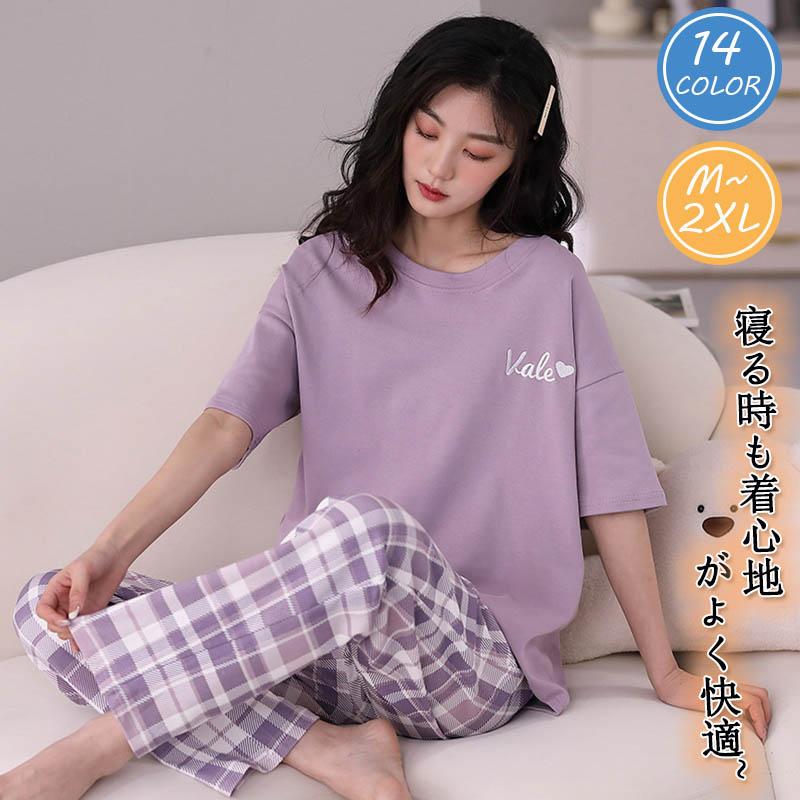 上下セット パジャマ レディース 春夏秋 チェック柄 半袖ルームウェア ナイトウェア 綿 可愛い ロングパンツ ルームウェア 柔らかい 女性 部屋着 寝間着 韓国風 ゆったり 夏物 薄手 カジ 春物