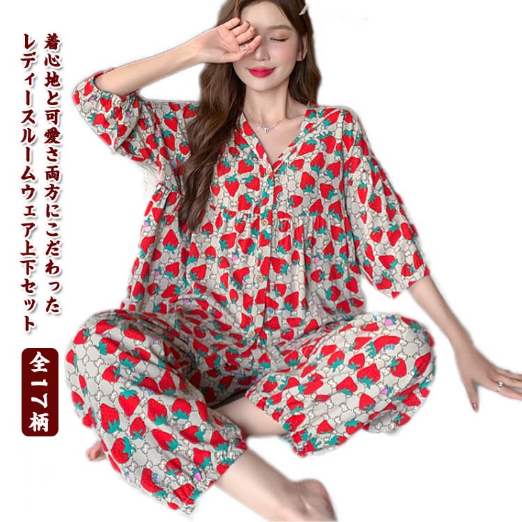 2~4 全17柄 パジャマ上下セット 7分袖 薄手 部屋着 可愛い 涼しい
