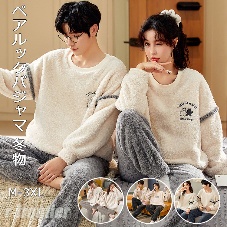 もこもこ パジャマ カップル ペア 着ぐるみ 大人用 冬 お揃い クマ レディース メンズ 着る毛布 上下セット 防寒 寝間着 ペアお揃い ふわふわ 暖かい ゆったり ルームウエア