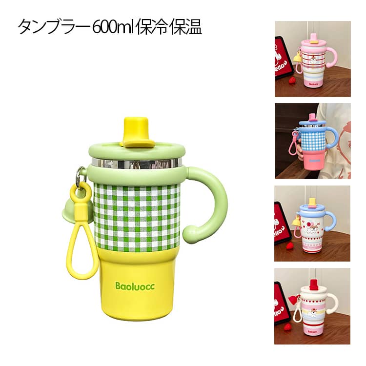 保温ボトル タンブラー 大容量 600 直飲み ストロー付きタンブラー コーヒーカップ おしゃれ かわいい ジム トレーニング 水分補給 保冷保温 ドリンクホルダー オフィス 車 ドライブ