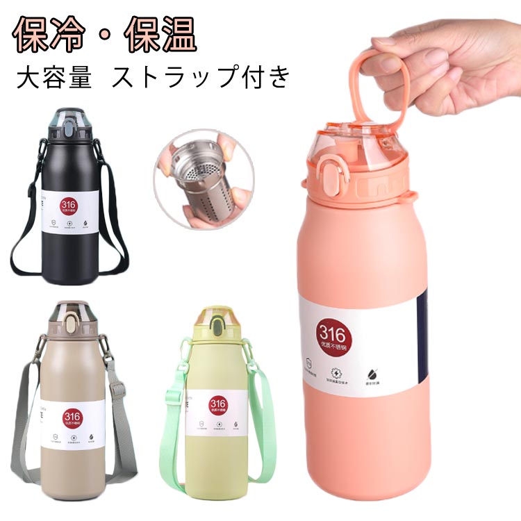 保冷 1リットル おしゃれ 1L 水筒 軽い 子供 直飲み スポーツ 保温 洗いやすい 魔法瓶 保温ボトル ステンレスボトル ストラップ 600ml 1000ml 真空 ステンレスボ 800ml