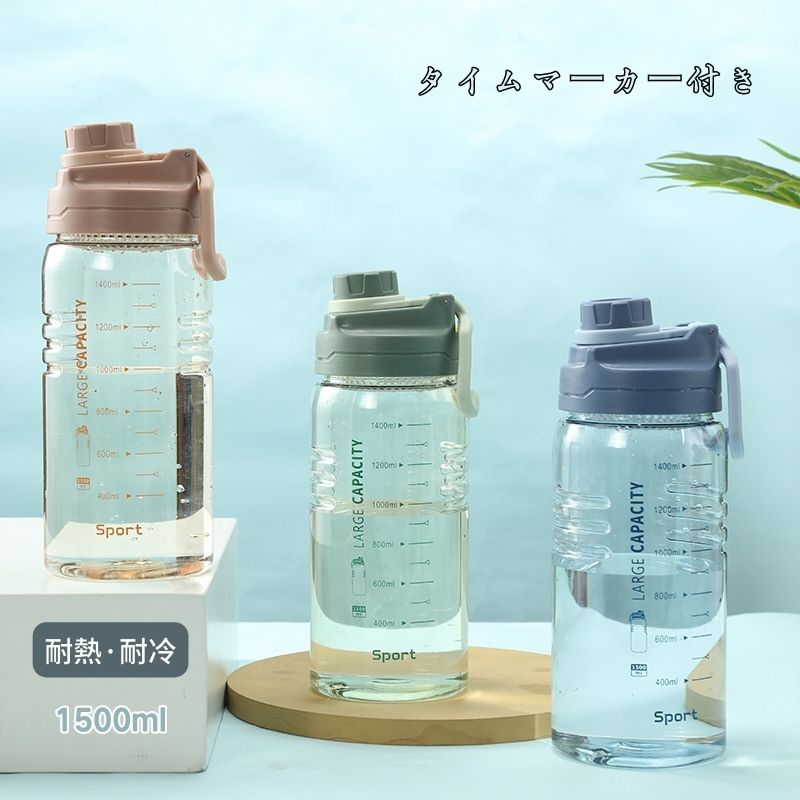 水筒 1.5リットル モチベーション ウォーターボトル 1.5L直飲み 大容量 タイムマーカー 目盛り プラスチックボトル マグボトル 大人 持ち運び スポーツ アウトドア トレーニ ランニング
