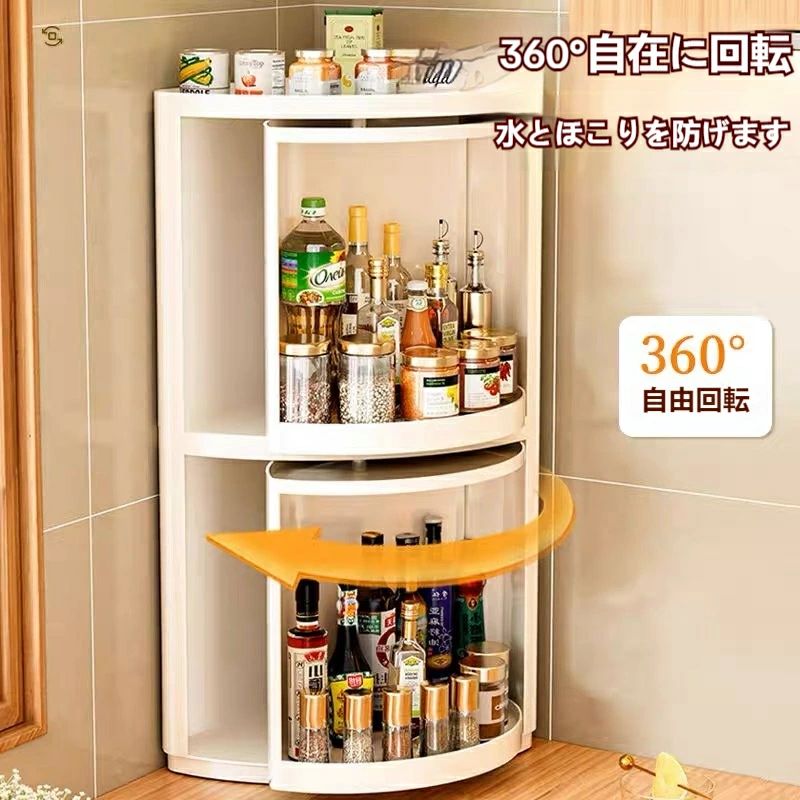 卓上収納 壁掛け式コーナーキャビネット 調味料 収納 大容量 スパイスラック 天面取り付け壁掛けコーナー回転ラック 調味料ラック 1 キッチン収納ラック 360度回転式 2段 台所収納 化 省スペース