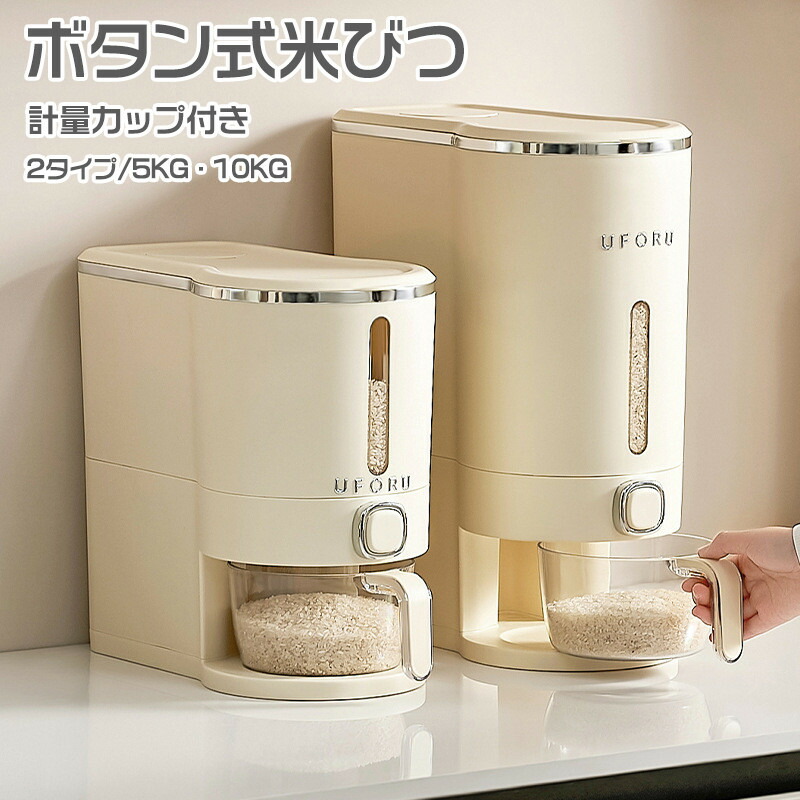 ボタン押しタイプ お米収納 無洗米対応 米びつケース キッチン コンパクト 省スペース 洗える 水洗い 米櫃防湿 虫除け おしゃれ 送料無料