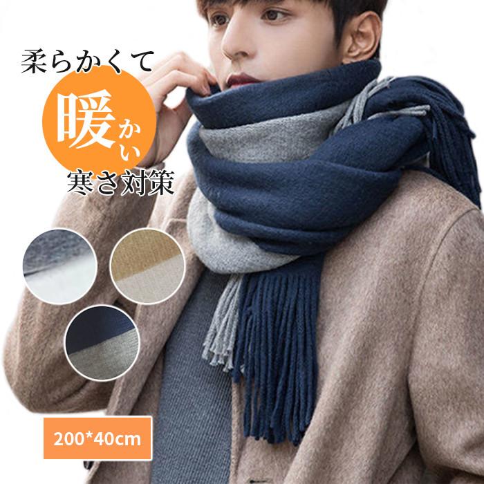 秋冬 メンズ おしゃれ カシミヤ バイカラー マフラー 厚手 ストール 配色 タッチ ウール なめらか 柔らか 男性 大人 あたっか 高見え 暖かい 学生 男子 チェック柄