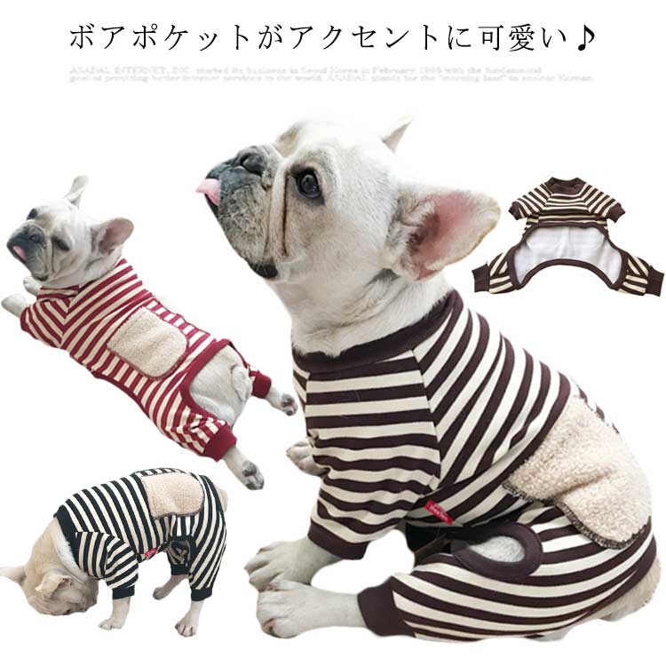 ドッグ ウェア 犬の服 裏起毛 ロンパース つなぎ ボーダー 猫 小型犬 中型犬 防寒 フレブル トイプードル 犬服 トレーナー パーカ 秋冬