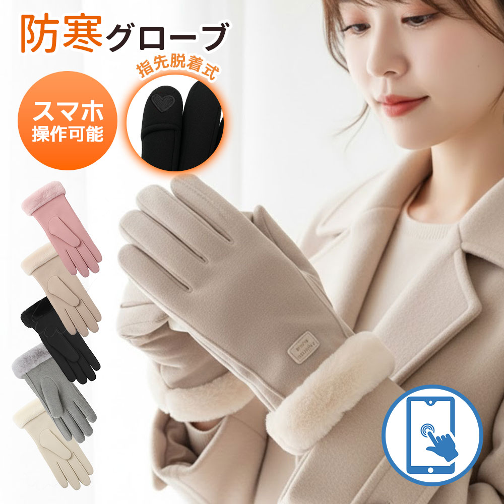 48%OFF 2 11 23:59迄 手袋 レディース スマホ対応 冬 防寒 グローブ 暖かい 裏起毛 ファー付き 指先脱着式 スマホ 手ぶくろ 防風 寒さ対策 黒 ファー 保温
