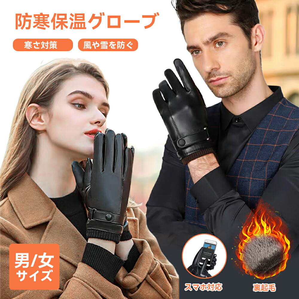 手袋 手袋レディース 手袋メンズ レザー タッチパネル対応 革 グローブ レザーグローブ 革グローブ 防水 防風 裏起毛 スマホ対応 暖かい PUレザー 防寒