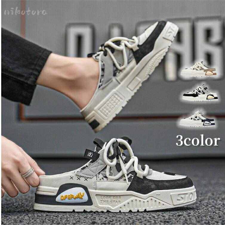 【送料無料】スニーカーサンダル メンズ バブーシュ スリッパ フラットサンダル かかとなし 軽量 カジュアルシューズ 紳士靴 履きやすい