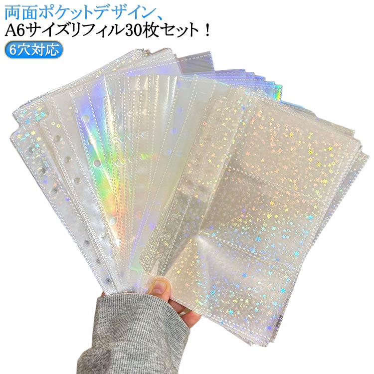 シール帳 リフィル A6サイズ シール台紙 剥がせる 6穴 バインダー手帳 6穴対応 30枚入り はがせる 台紙 ステッカー 推し活 収納 透明シール帳 マステ台紙