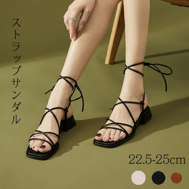おしゃれストラップサンダル ローヒール 靴 オシャレ 美脚 走れる サマーサンダル 夏 サマー 通勤 オフィス 22.5/23/23.5/24/24.5/25 送料無料