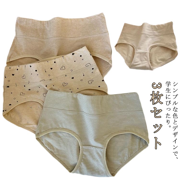 2組購入で800円オフクーポンあり♪ ショーツ レディース 3枚セット セット 綿 深め まとめ買い ハイウエスト お腹引き締め 大きいサイズ 深ばきショーツ 食い込まない L かわいい
