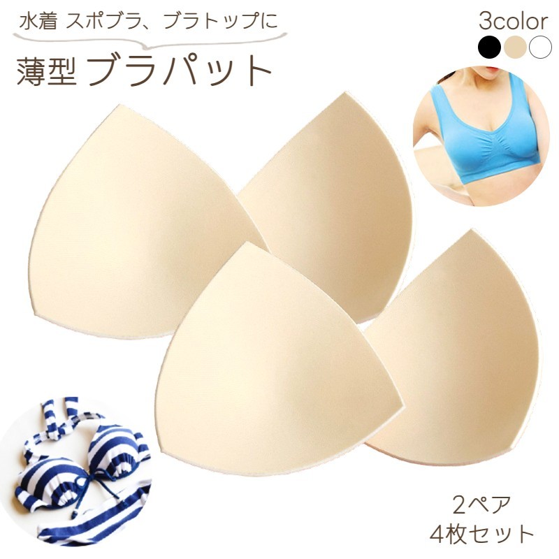 ブラパッド バストパッド 胸パッド 4枚セット 2ペア 付け替え用 交換用 取り外し可 水着 授乳ブラ スポーツブラ 通気性 ソフト やわらかい ビキニ 三角 スクエア インナー ブラパーツ ブ 薄手