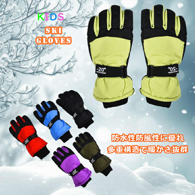 スキーグローブ キッズ 防寒 手袋 スノー用 子供用 裏起毛 防水 防風 保温 紛失防止 滑り止め 男の子 女の子 通学 通園 アウトドア 雪遊び 耐磨耗 可愛い ユニセックス スポーツ