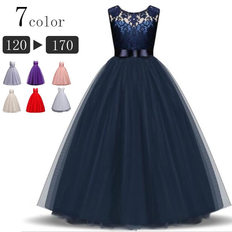 子供ドレス ロングドレス 女の子 ジュニア ピアノ 発表会 パーディー 演奏会 フォーマル 入園式 結婚式 ワンピース 120 130 150 160 170 140