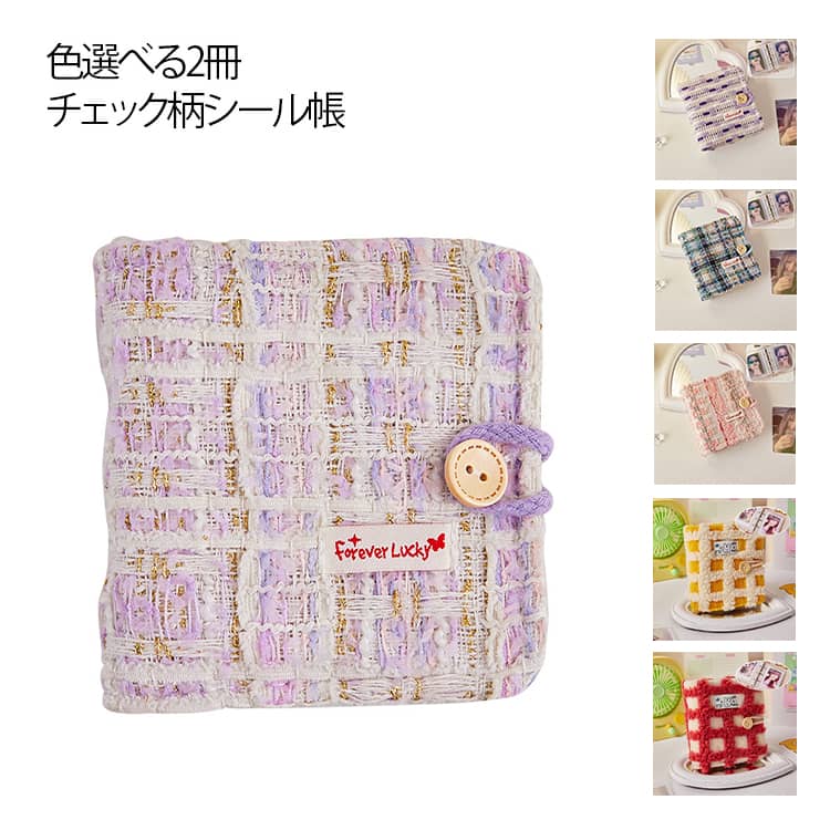 チェック柄シール帳 ミニ リフィル20枚付き 透明シール帳 もこもこ シール帳 バインダー a8 ツイード シール手帳 はがせる 透明 カードスリーブ シール台紙 おしゃれ 女の子 トレ かわいい