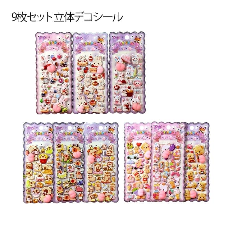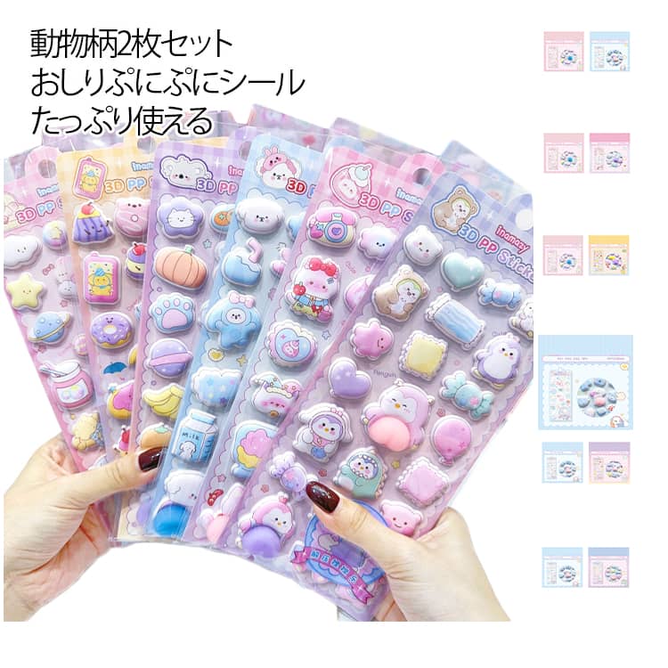 【9枚セット】 おしりぷにぷにシール 3 ふわふわ ステッカー ぷくぷくシール 3お尻シール ぷっくりシール キャラクター デコレーション 動物