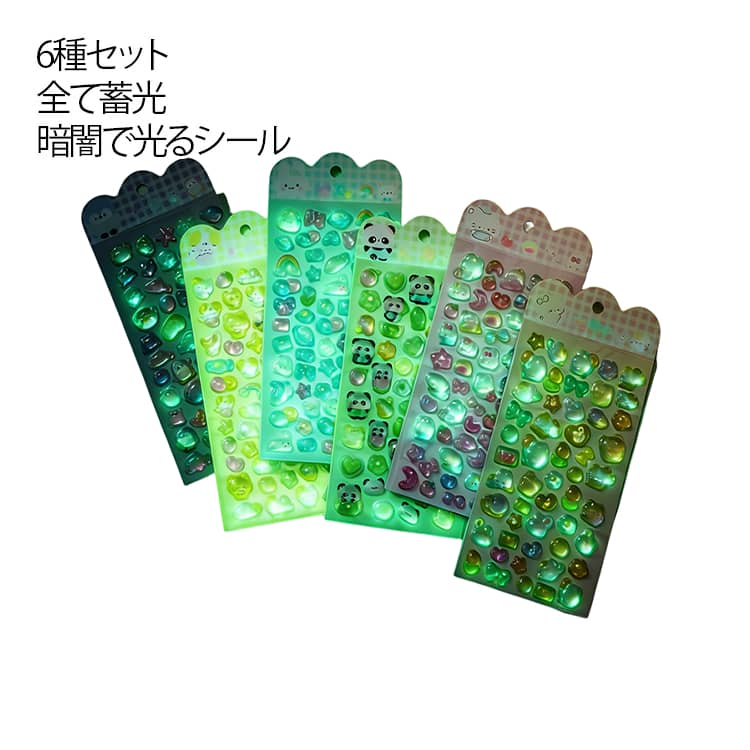 【6枚セット】 暗闇で光る ぷっくりシール 全て蓄光仕様 2026最新版 ぷくぷくシール 3 立体 夜光 ぷっくり シール 用 手帳用 日記帳用 スマホケース