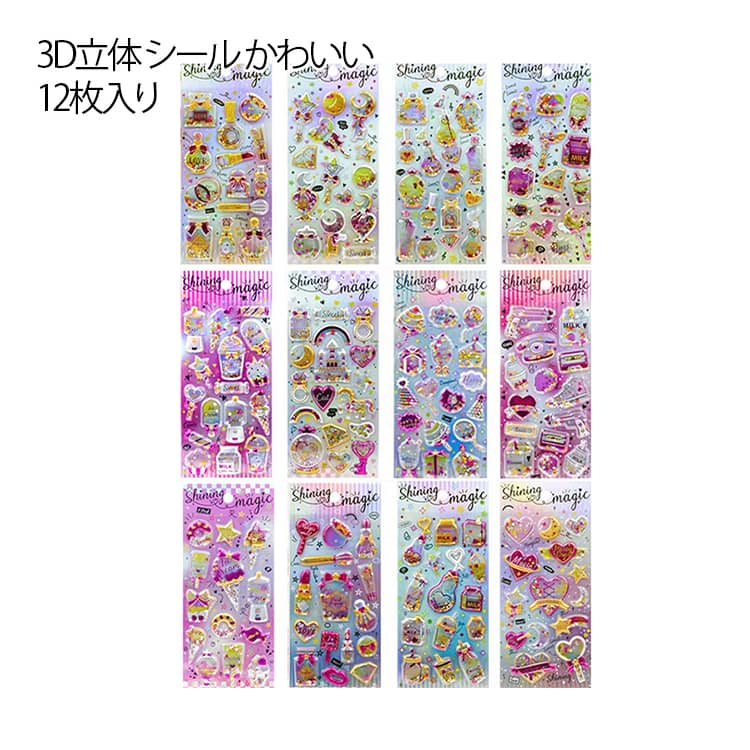 送料無料 3立体シール 12枚セット 3立体 シール 交換 かわいい 3 立体シール キラキラ ビーズ入り ステッカー 交換用 クリスマス プレゼント レトロ回帰 エモ消費 2 平成テイスト