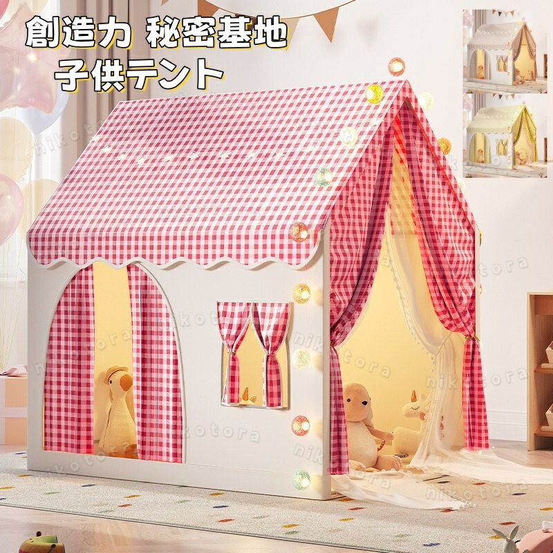 子供テント キッズテント 子供の夢の住所 秘密基地 チェック柄 キッズテントハウス 隠れ家 子供部屋 ままごと おしゃれ テント 室内室外兼用 女の子 プリンセス城型 ハウス お誕生日プレゼン 男の子