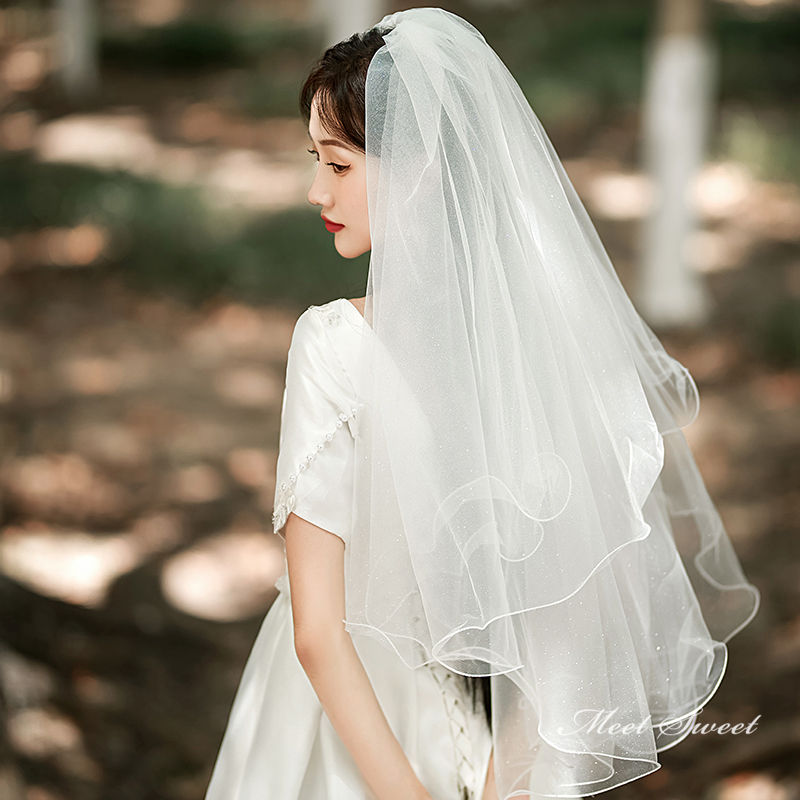 ウエディングベール ミドル 腰下 ミニマル パイピング シンプル ミドルベール ウェディング ミディアムベール 韓国風 可愛い 花嫁 ヘッドアクセサリー ヘッドドレス