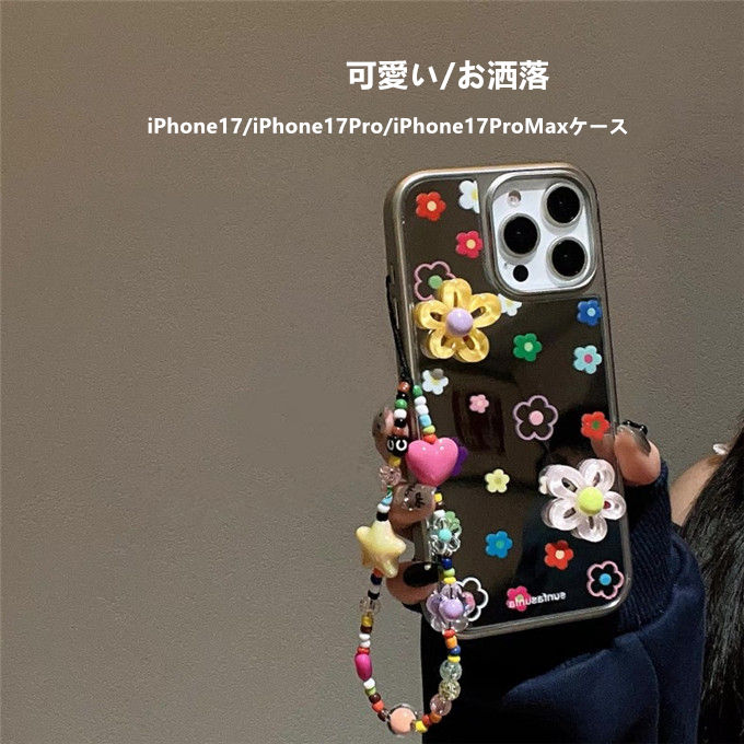 17 ケース 17ケース 17ケース 17ケース ストラップ付き 花飾り 鏡面 レディースファション 可愛いケース おしゃれ 16ケース 15ケース