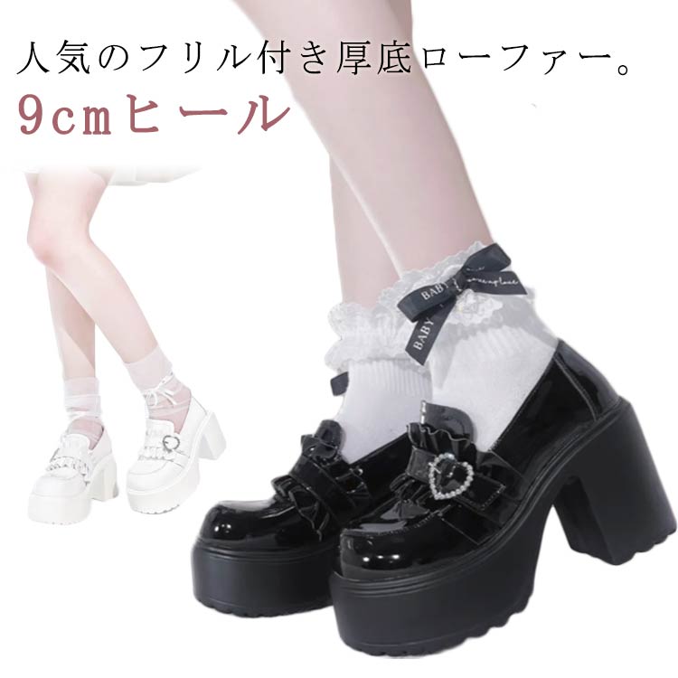ローファー 靴 厚底 厚底パンプス 太ヒール 地雷系 シューズ サブカル系 身長アップ 9cmヒール ゴス スリッポン ゴシック ロリータ ゴスロリ 厚底ローファー パンプス ラウ V系