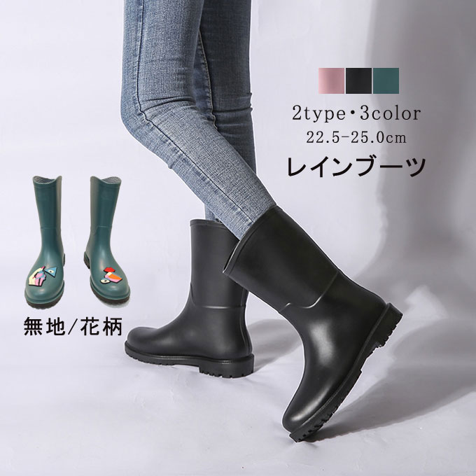 レインブーツ レディース おしゃれ ラバーブーツ ラバー 長靴 雨具 ミドル丈 柔らかい 可愛い 女性 婦人 大きいサイズ 雨 雪 防水 靴 農作業 梅雨
