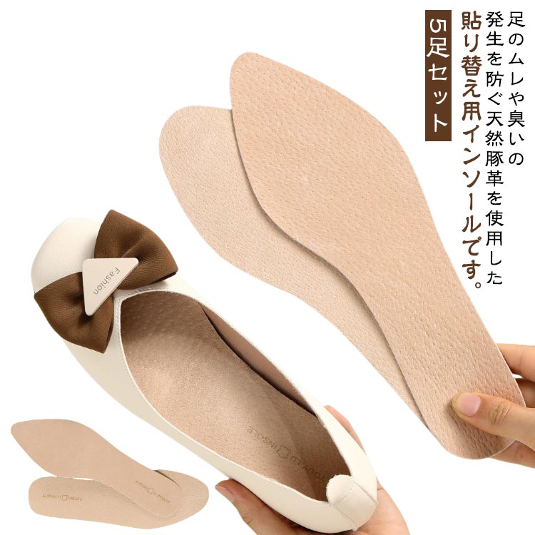 5足セット インソール 貼り替え 豚革 中敷 本革 インソール補修 取り換え用 靴修理 シューケア 貼替 革靴 レディース 女性用 サンダル パンプス 汚れ防止 天然豚革インソール 通気性 ミュール