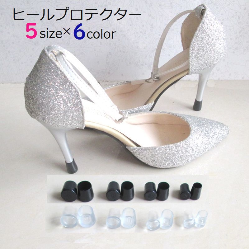ヒールプロテクター ヒールカバー ヒールキャップ 2個入り 靴用品 修理 補修用品 シューケア用品 ハイヒール ピンヒール かかと保護 ヒール保護 便利 簡単 シンプル 目立たない 茶 クリア ベ 黒