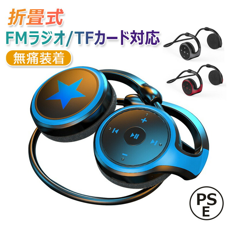 Bluetooth5.0イヤホン SDカード FMラジオ TFカード対応 折りたたみ式 耳掛け式イヤホン 高音質 無痛装着 スポーツイヤホン マイク内蔵