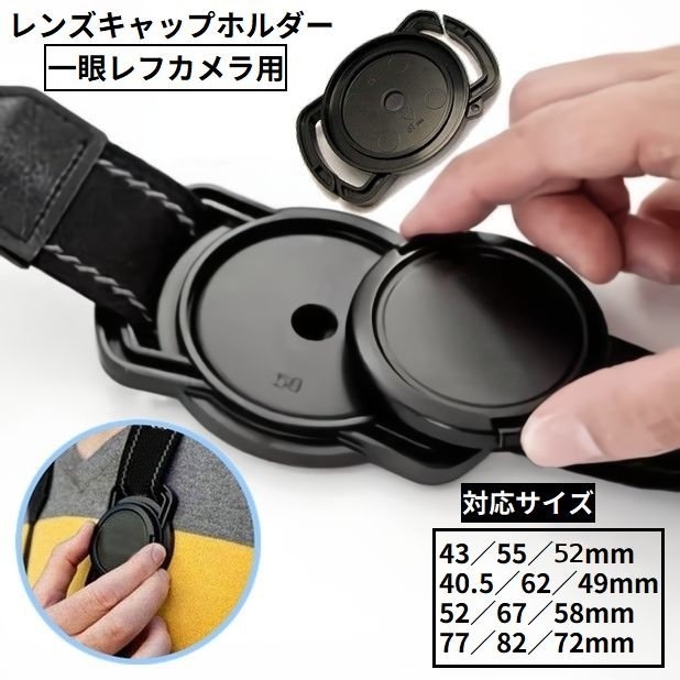 レンズキャップホルダー 一眼レフカメラ用 40.5 43 46 49 52 55 58 62 67 72 82mm 紛失防止 落下防止 77