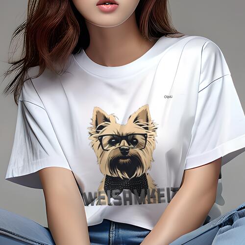 ケアーンテリア Tシャツ 犬愛 ユニークデザインレディース 犬ファン 半袖 春夏 プリント 大人カジュアル かわいい 人間用 ギフト 猛暑対策 メガネ 蝶ネクタイ 個性的